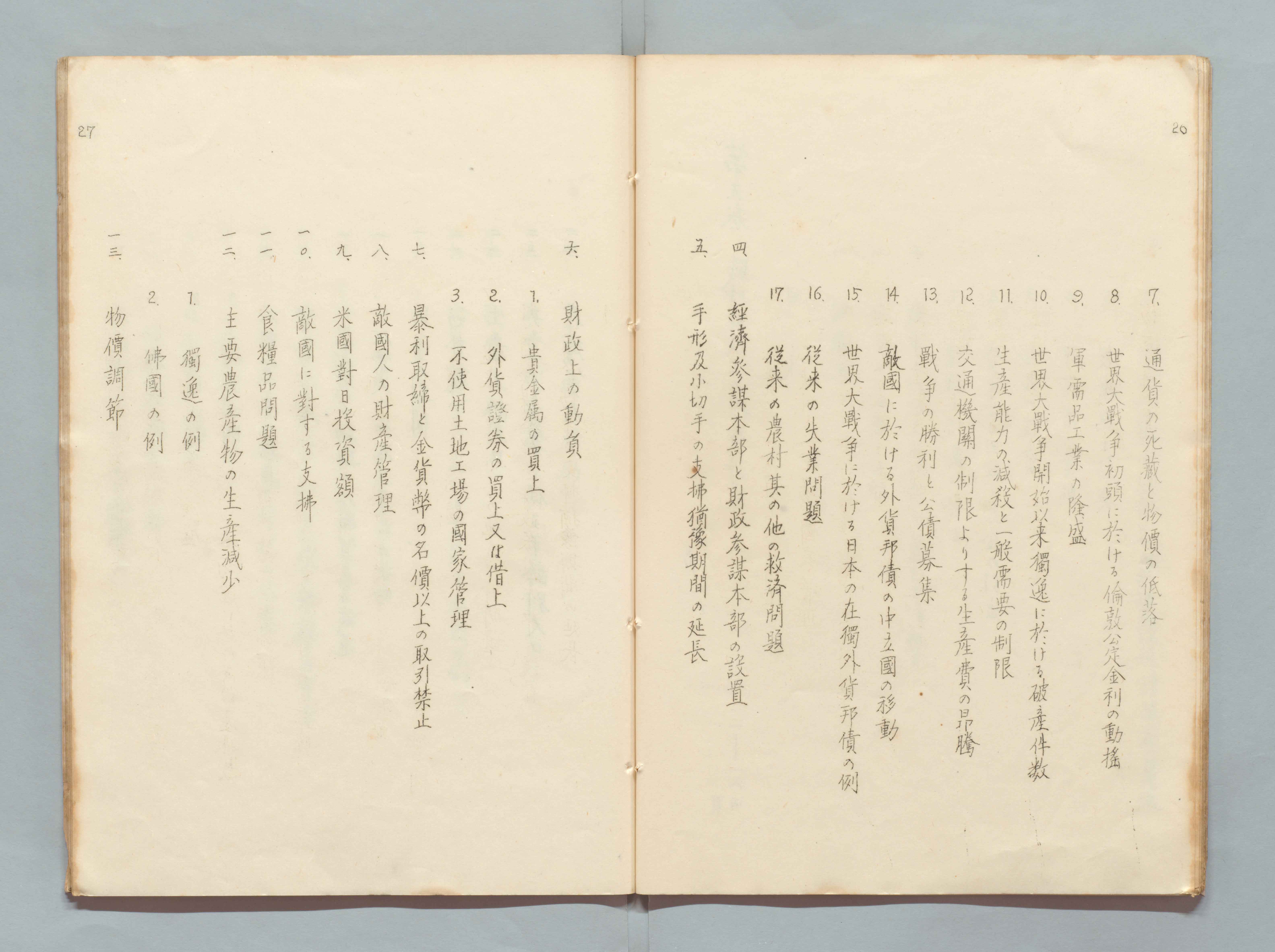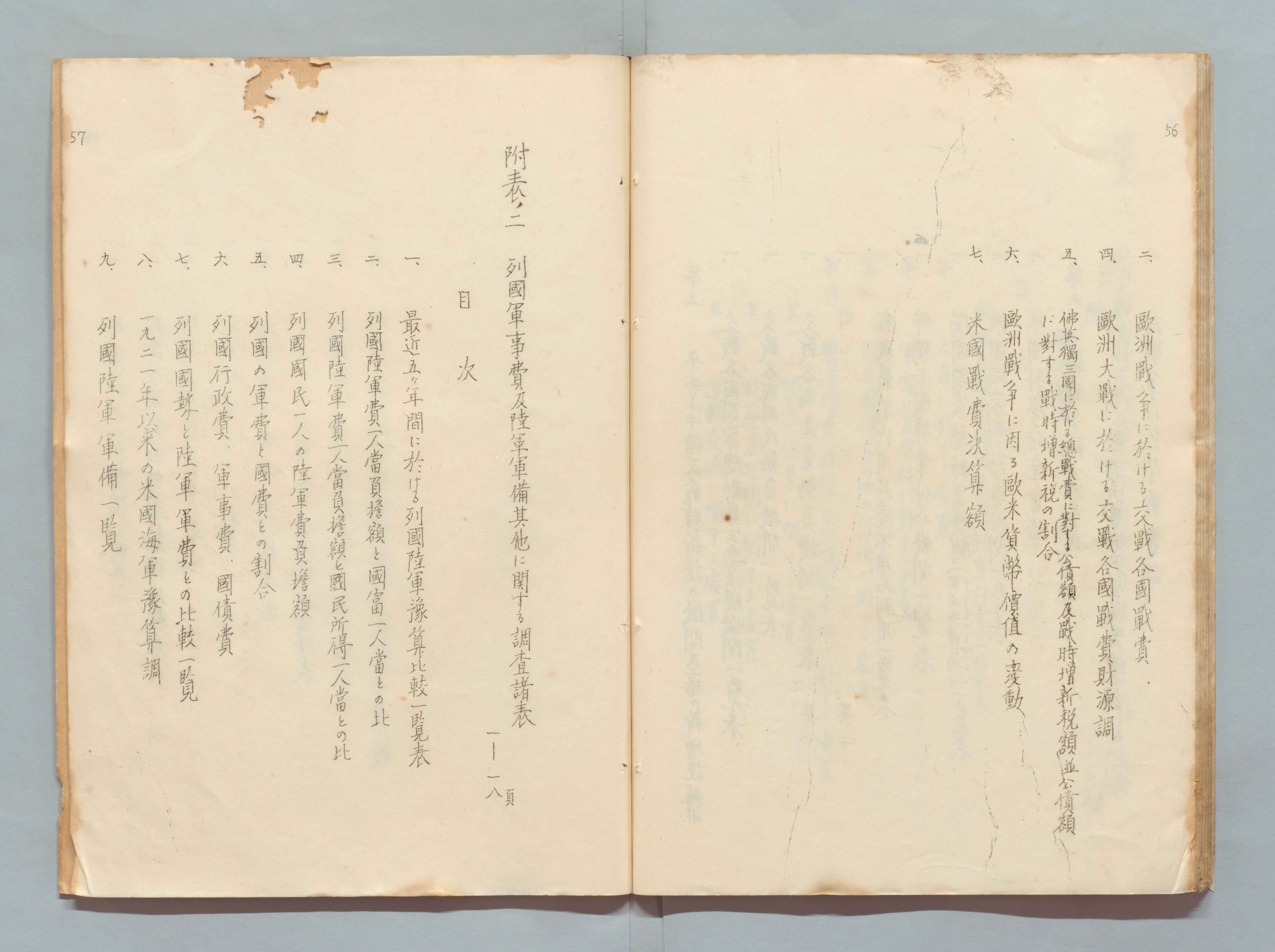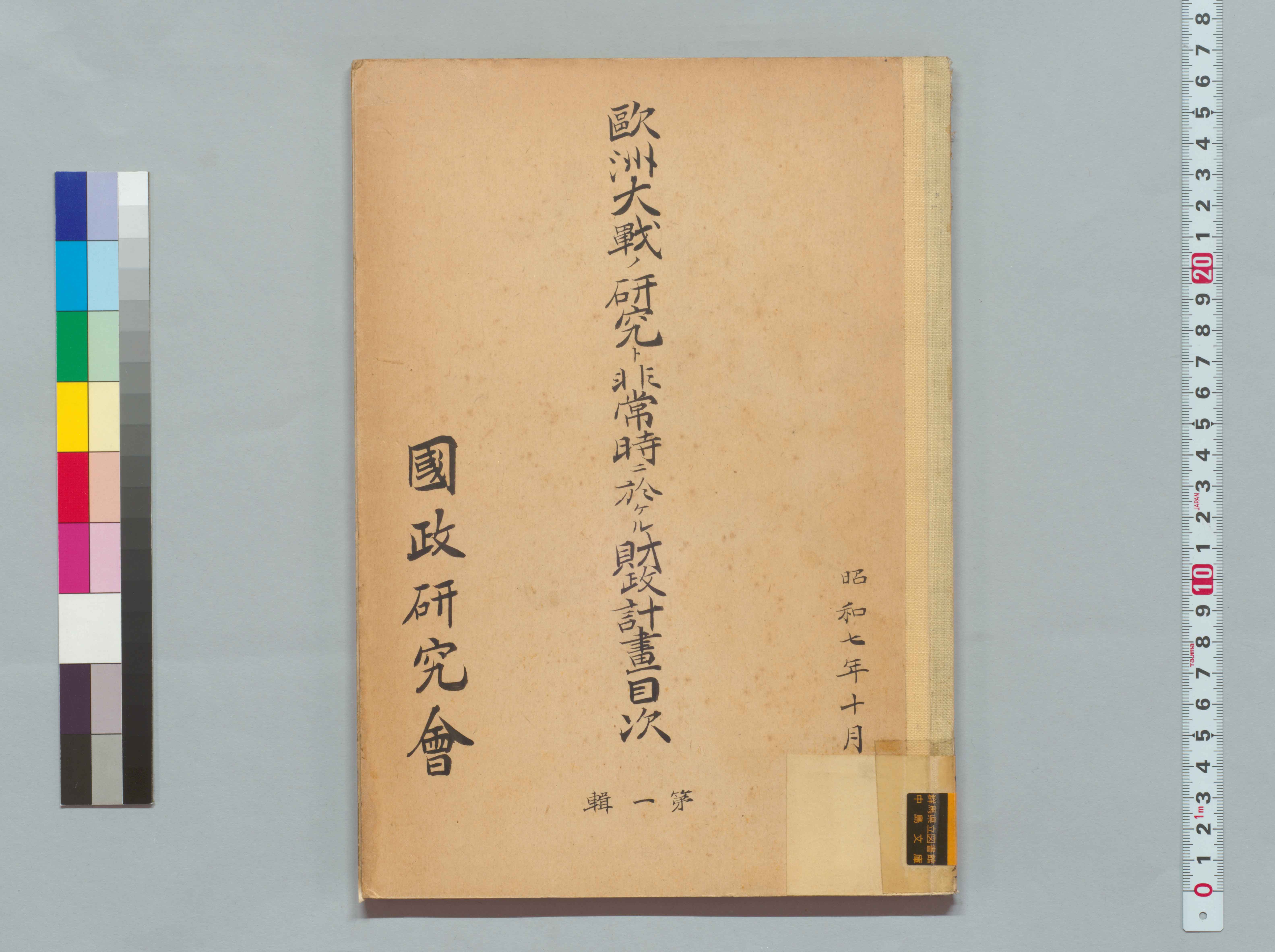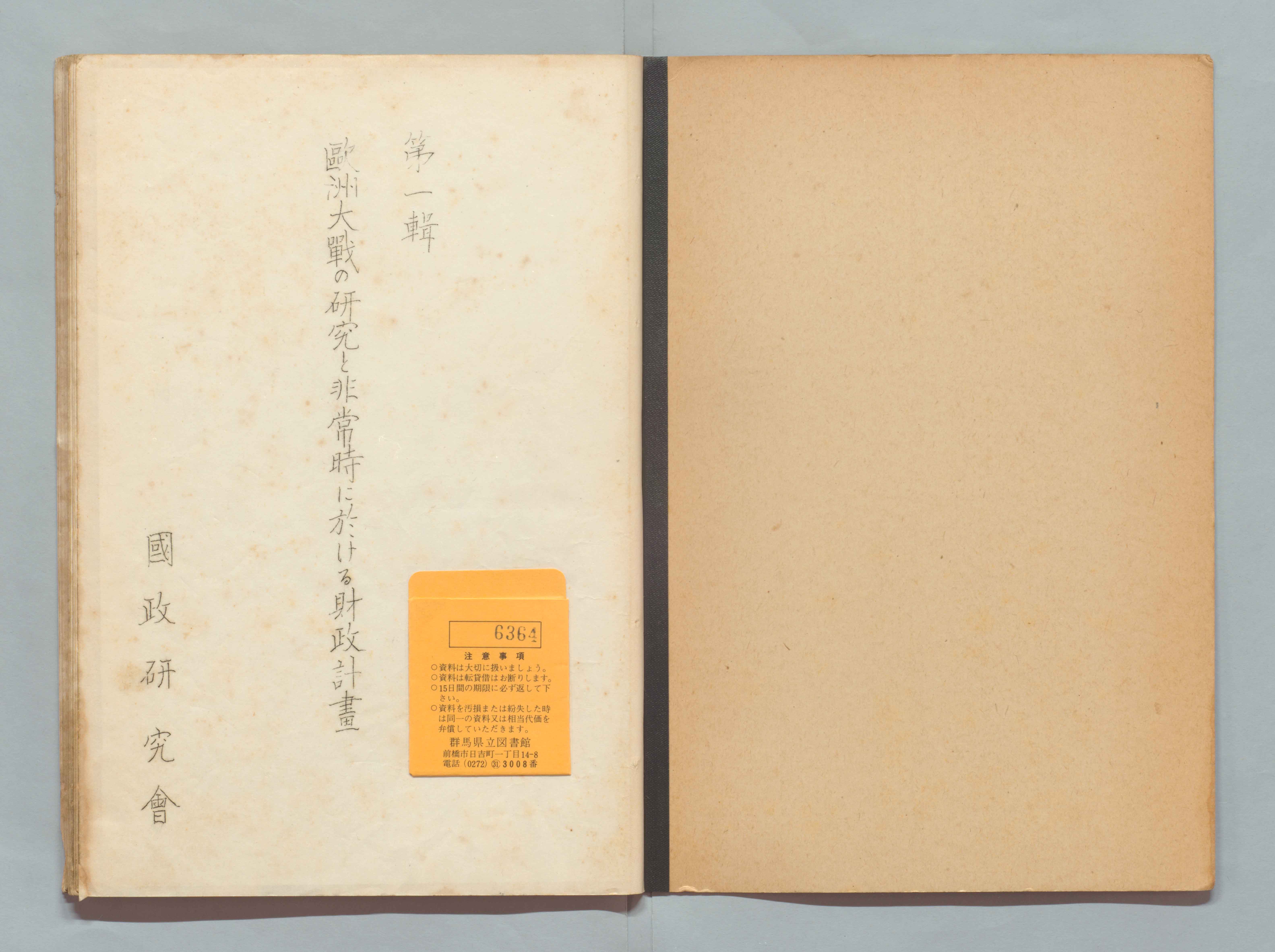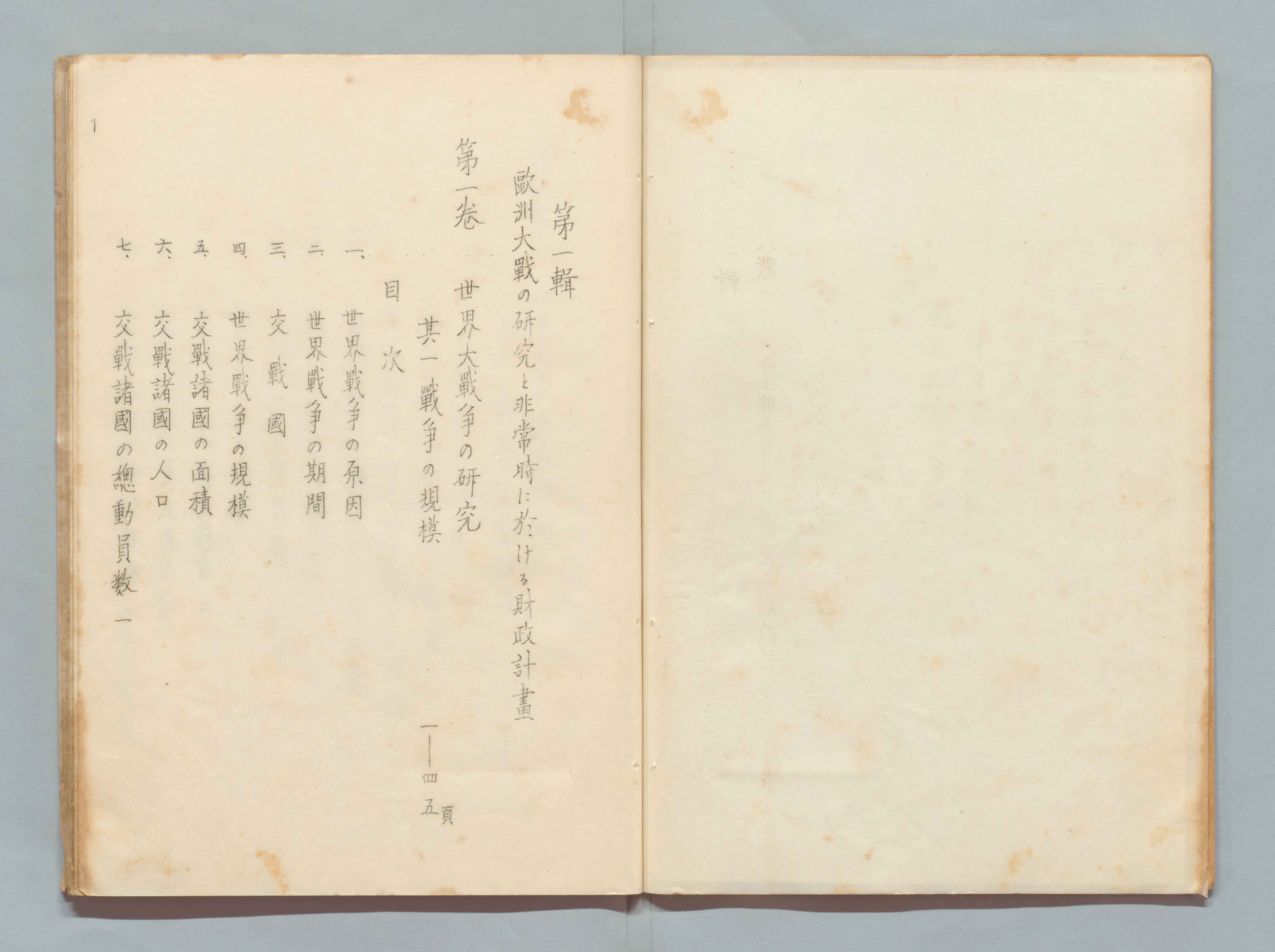1100248341_欧州大戦ノ研究ト非常時ニ於ケル財政計画目次 第一輯