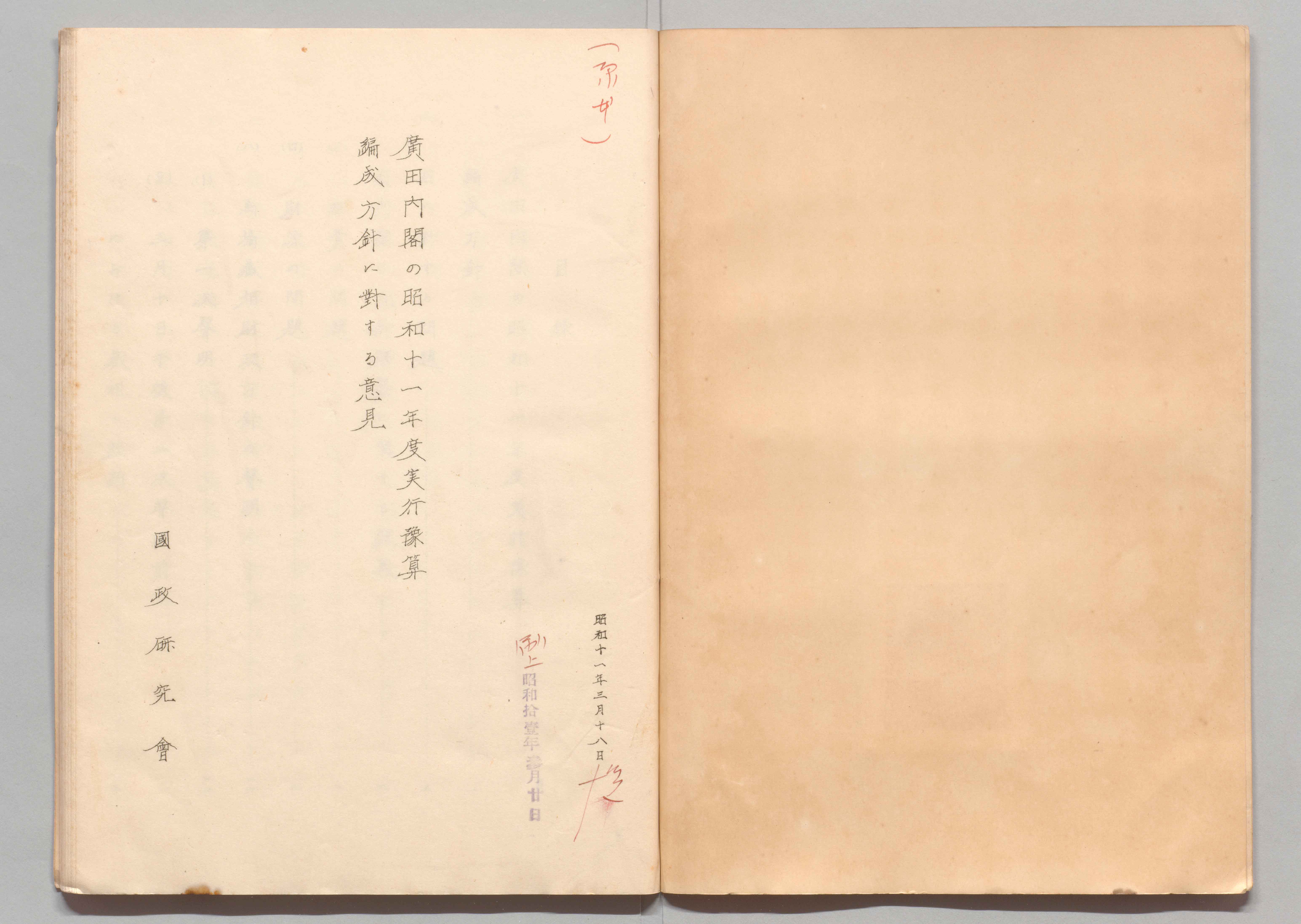 1100248385_広田内閣の昭和十一年度実行予算編成方針に