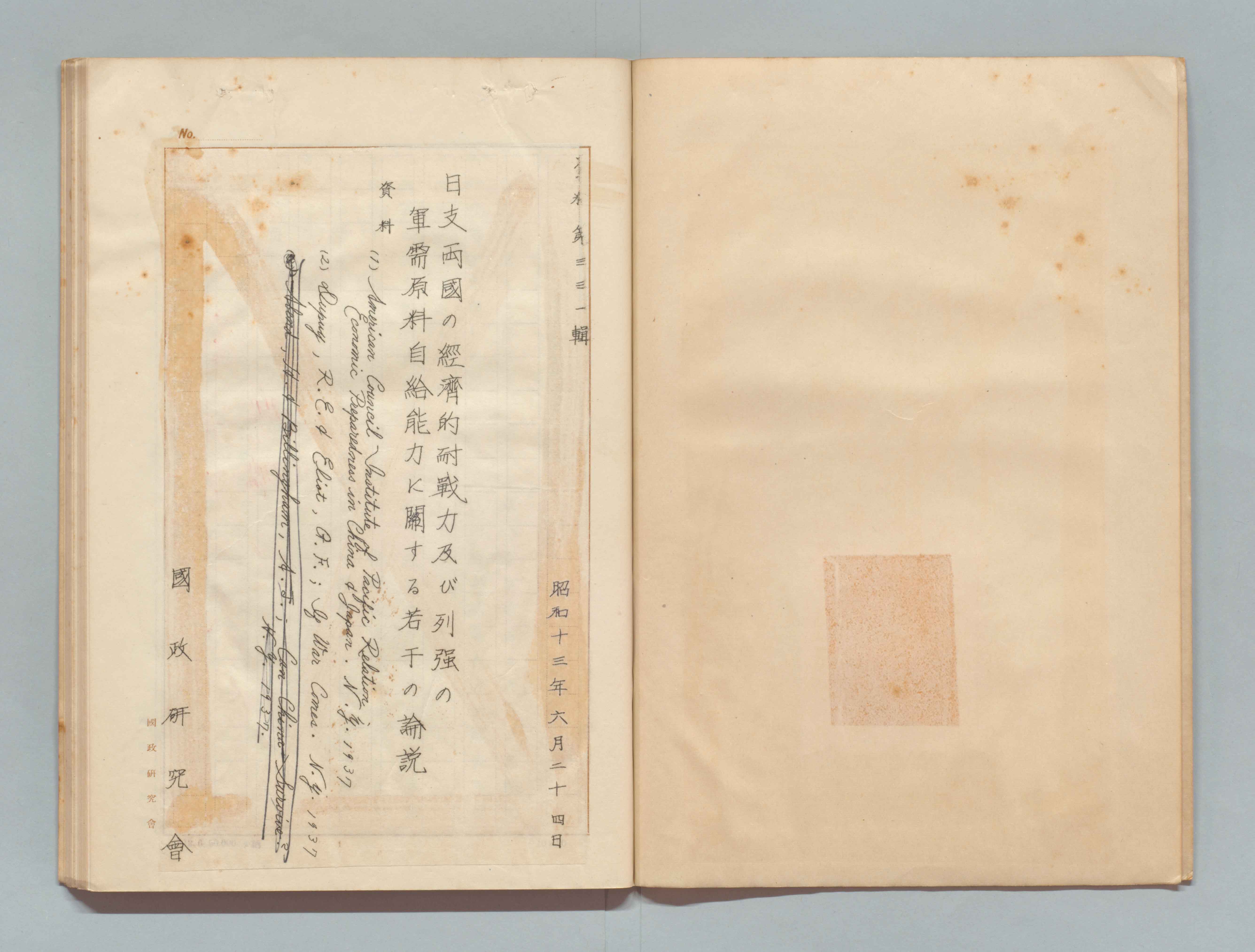 1100248508_日支両国の経済的耐戦力及び列強の軍需原料自給能力に関する若干の論説