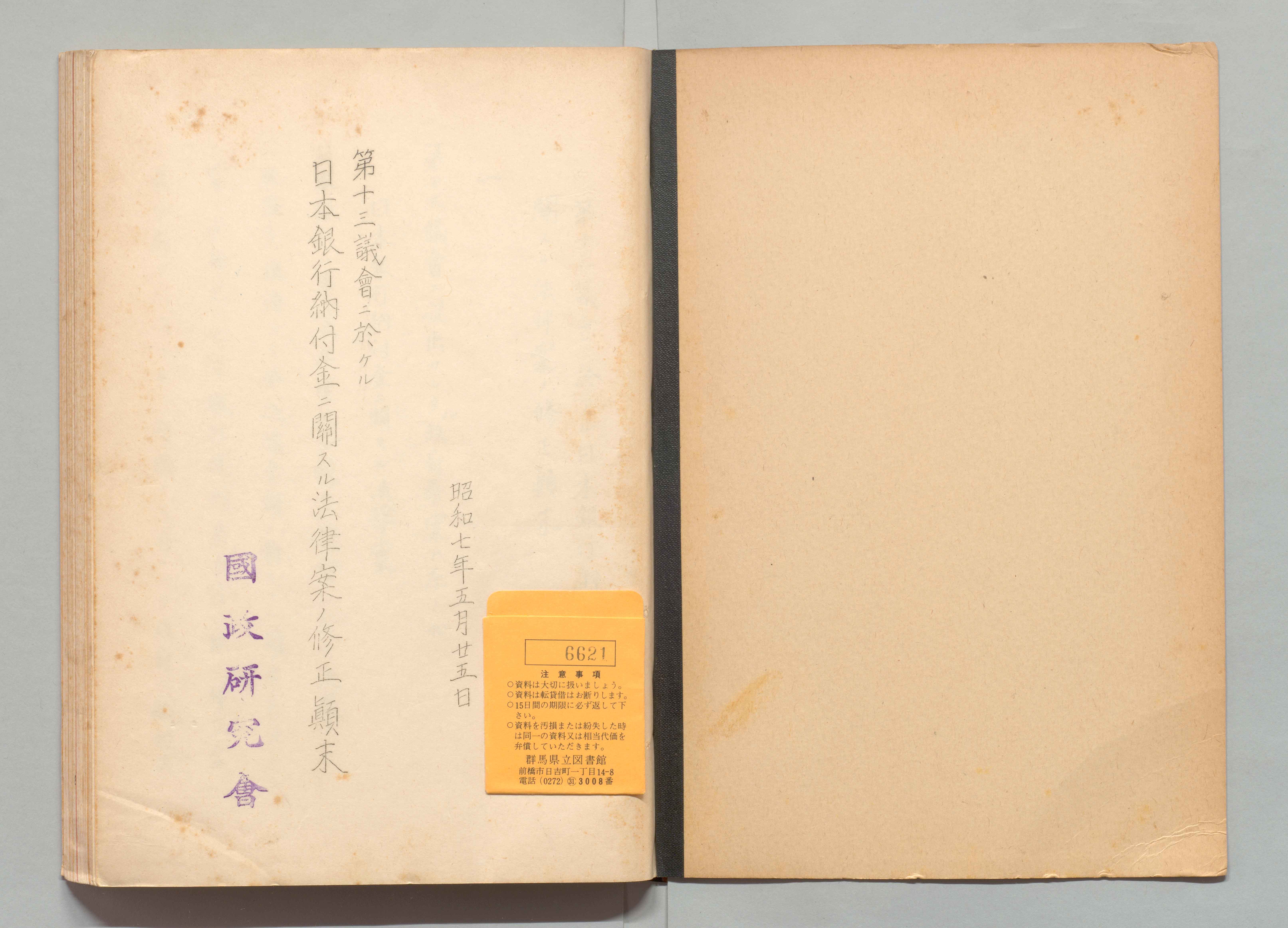 1100249852_第十三議会ニ於ケル日本銀行納付金ニ関スル法律案ノ修正顛末