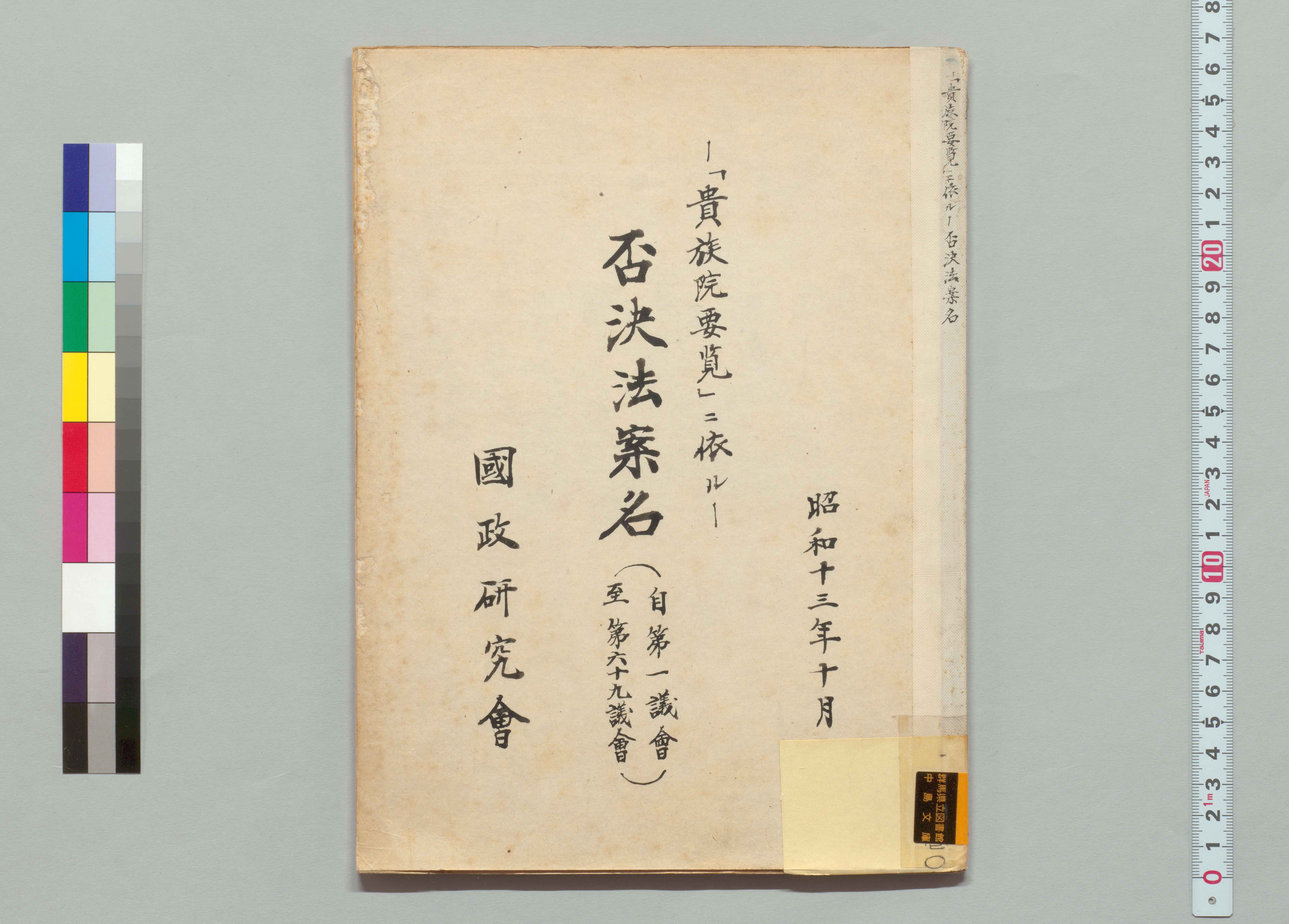 1100247875_否決法案名 「貴族院要覧」ニ依ル 自第1議会至第67議会