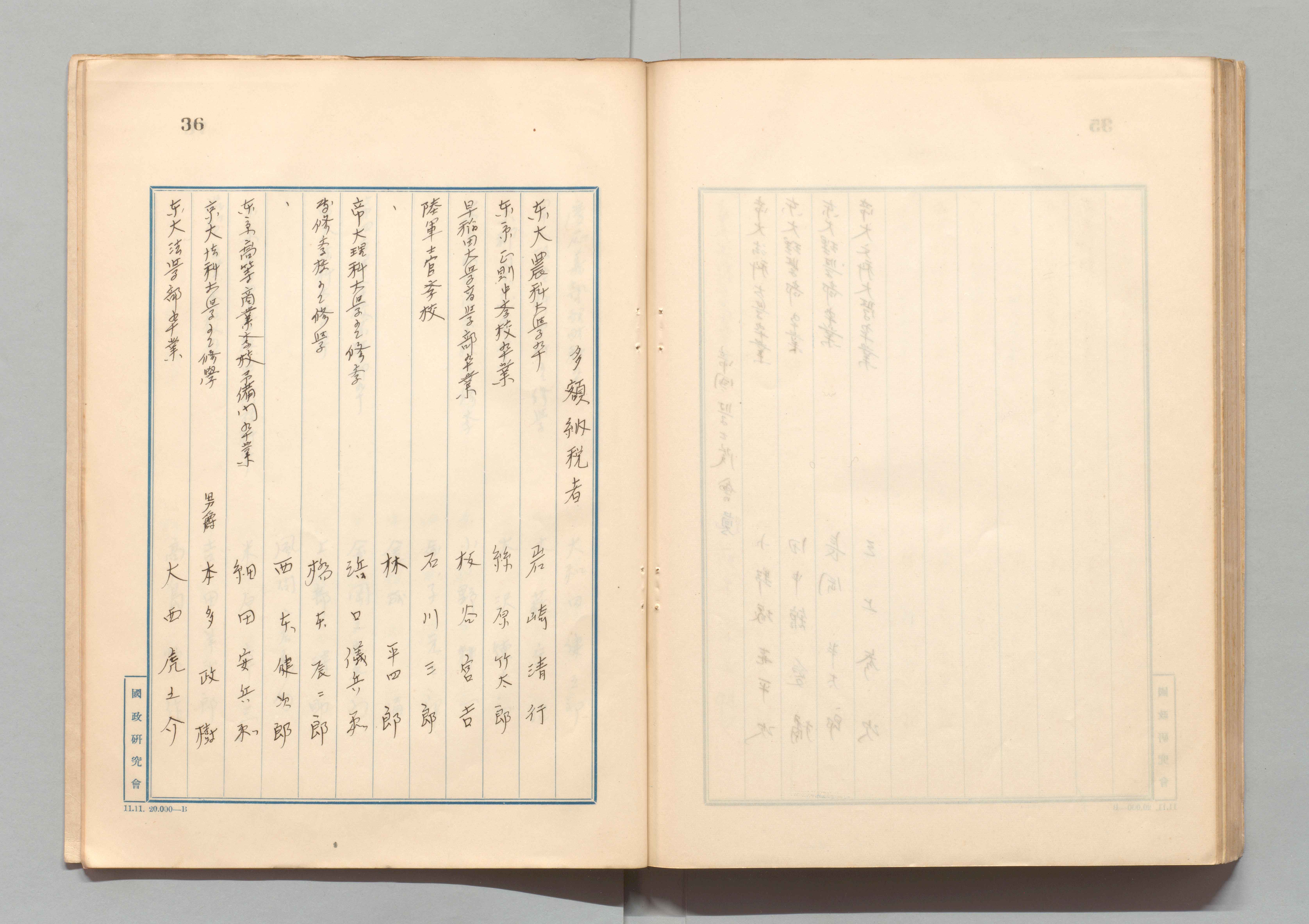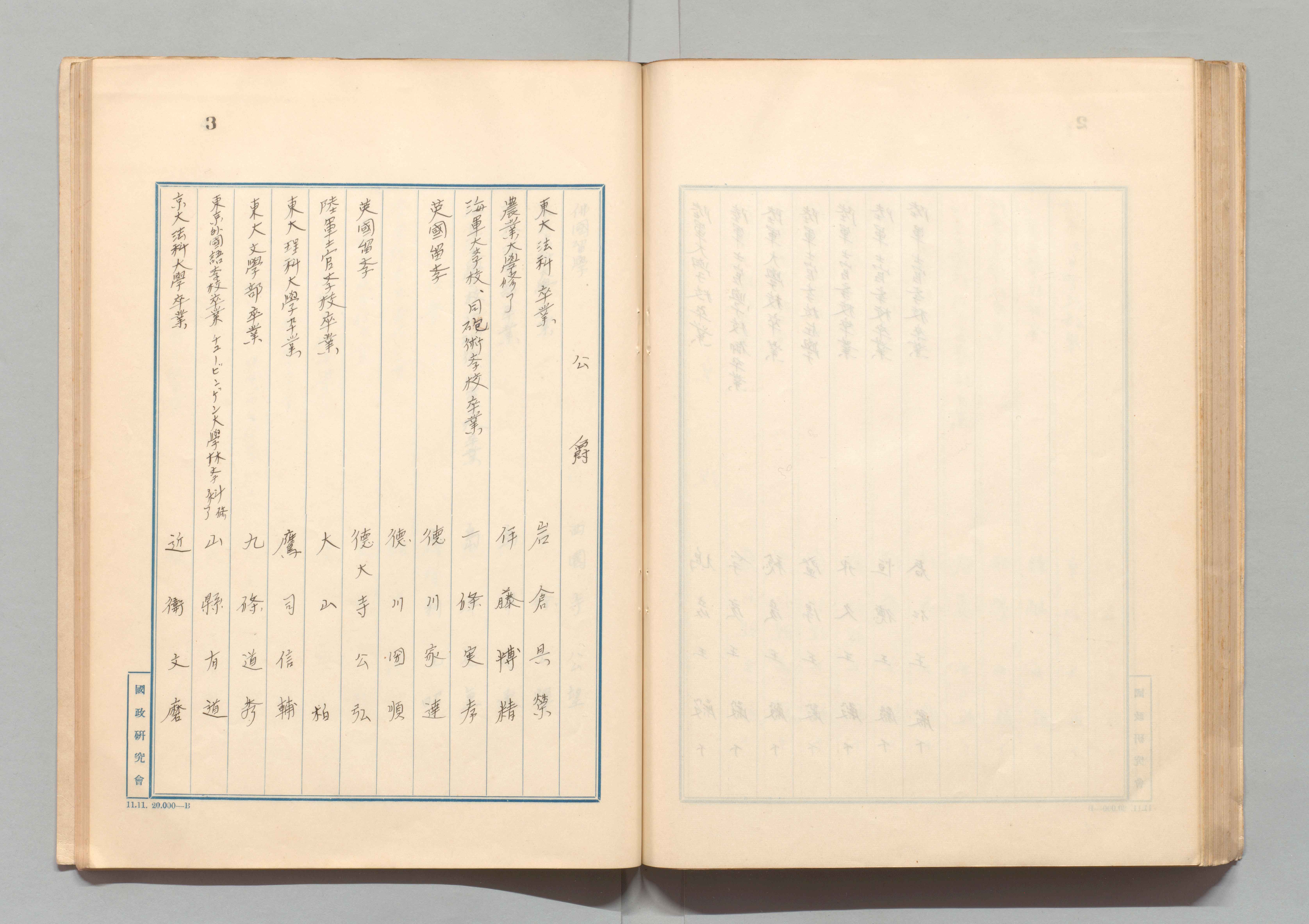 1100249876_貴族院議員学歴調 [書写資料] 自其ノ1至其ノ4