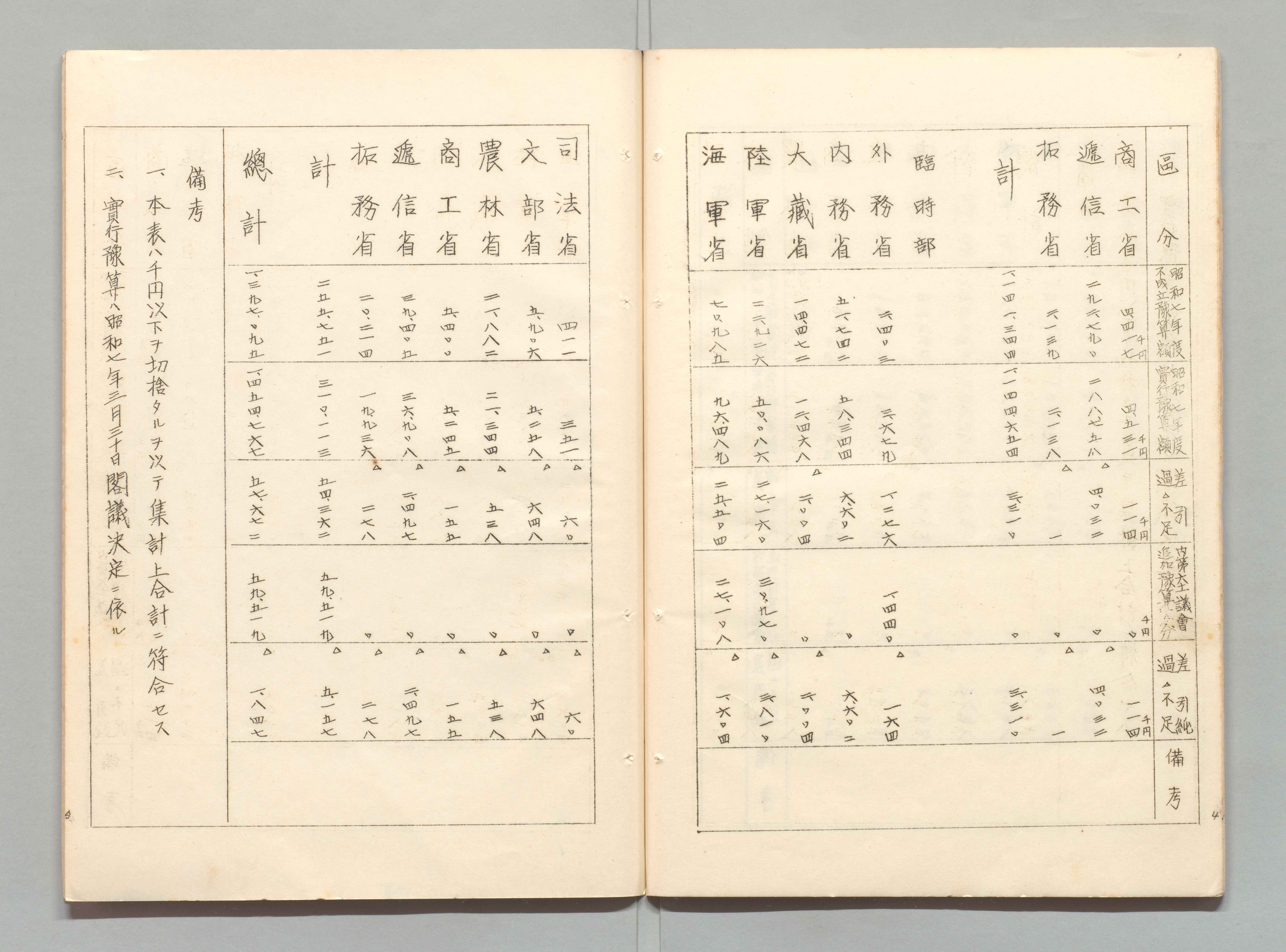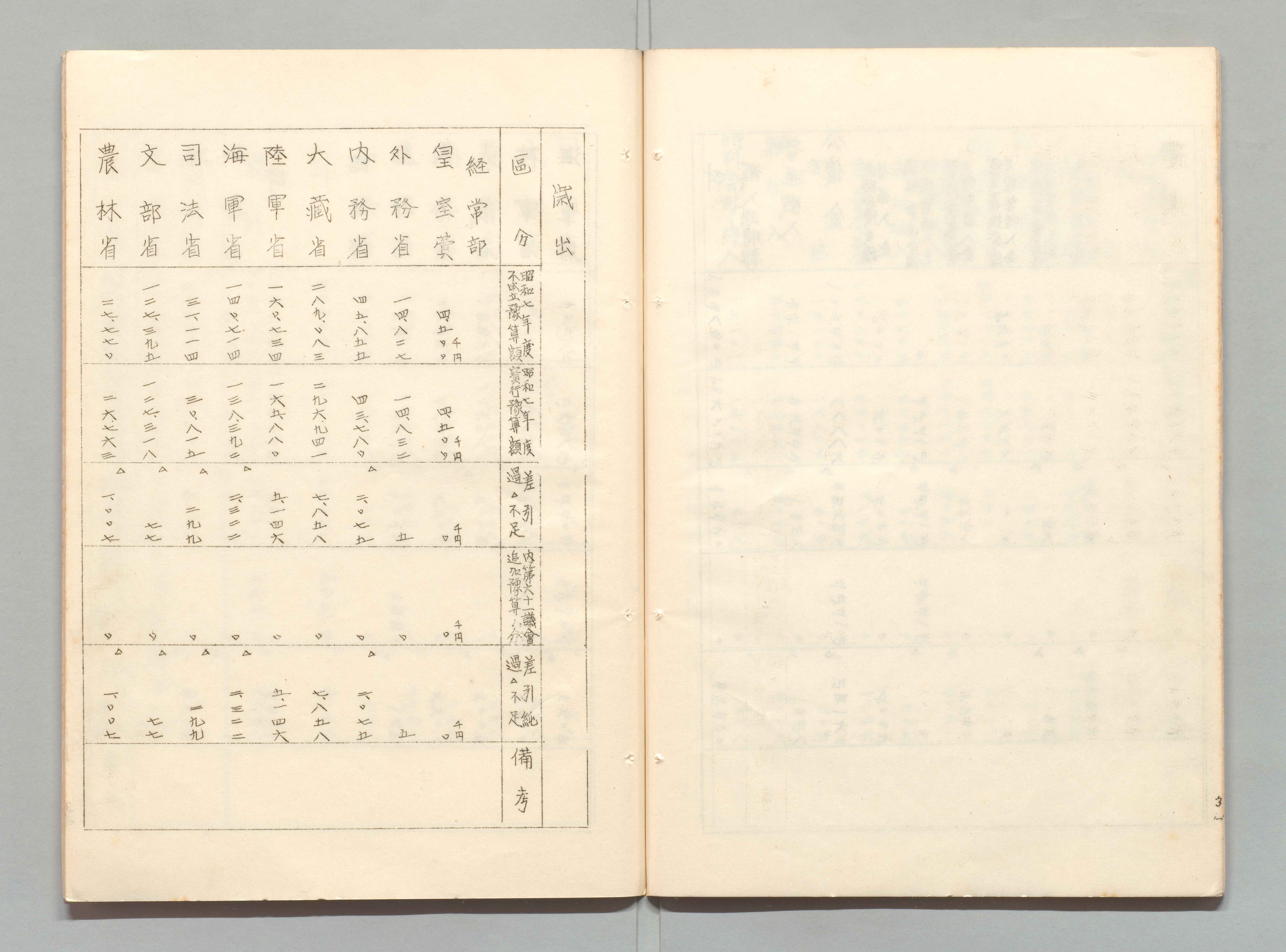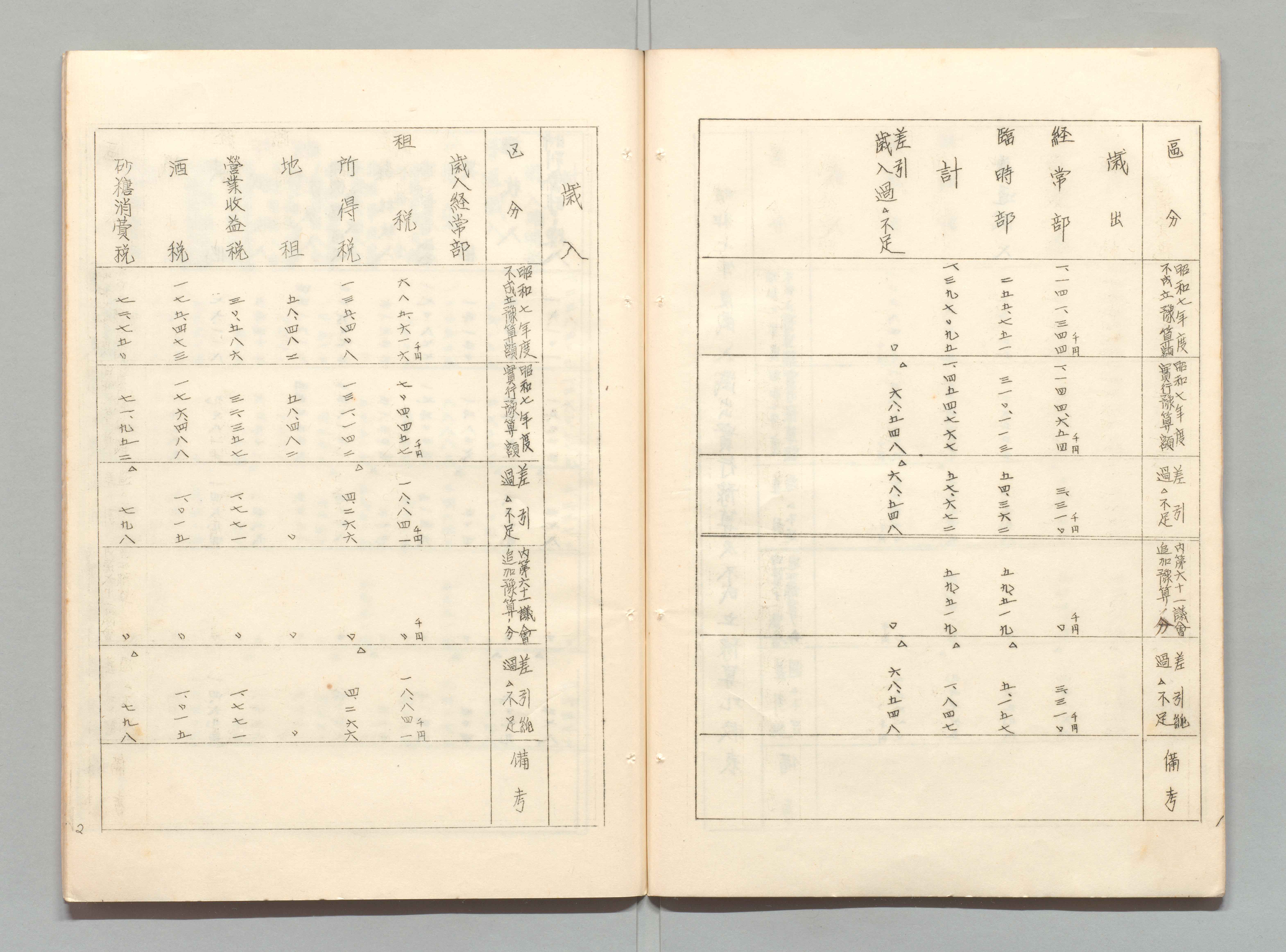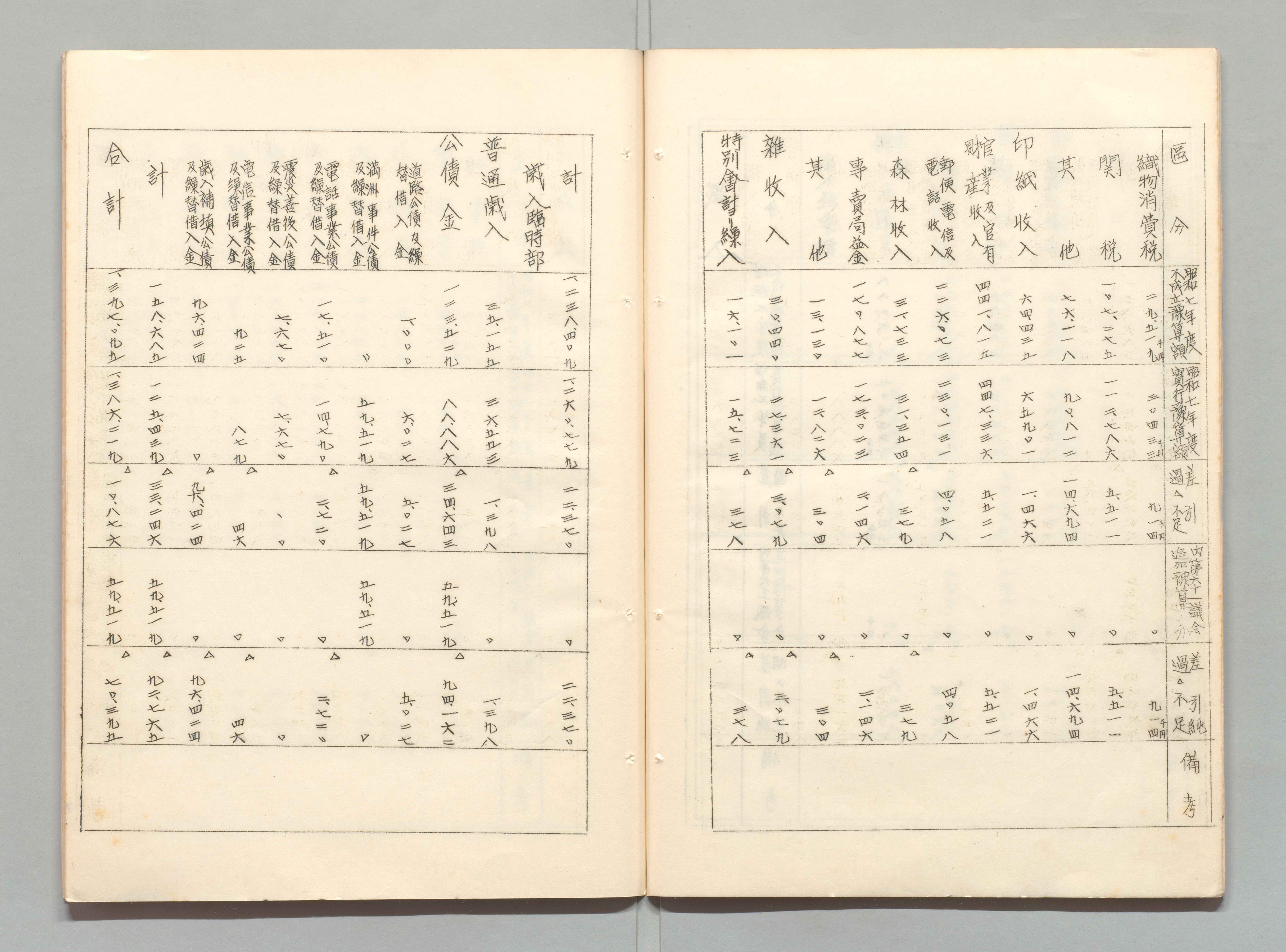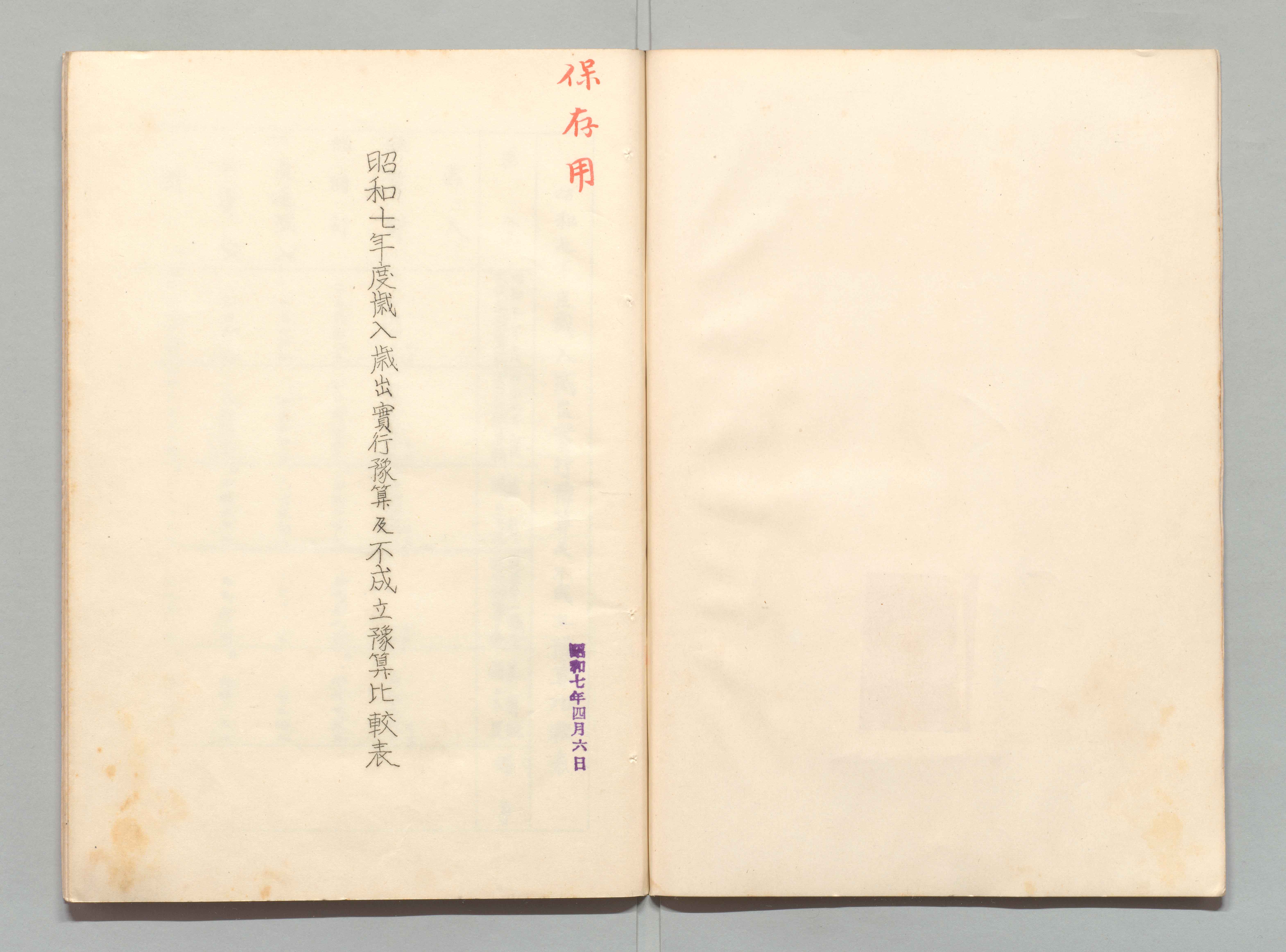 1100249895_昭和七年度歳入歳出実行予算及不成立予算比較表