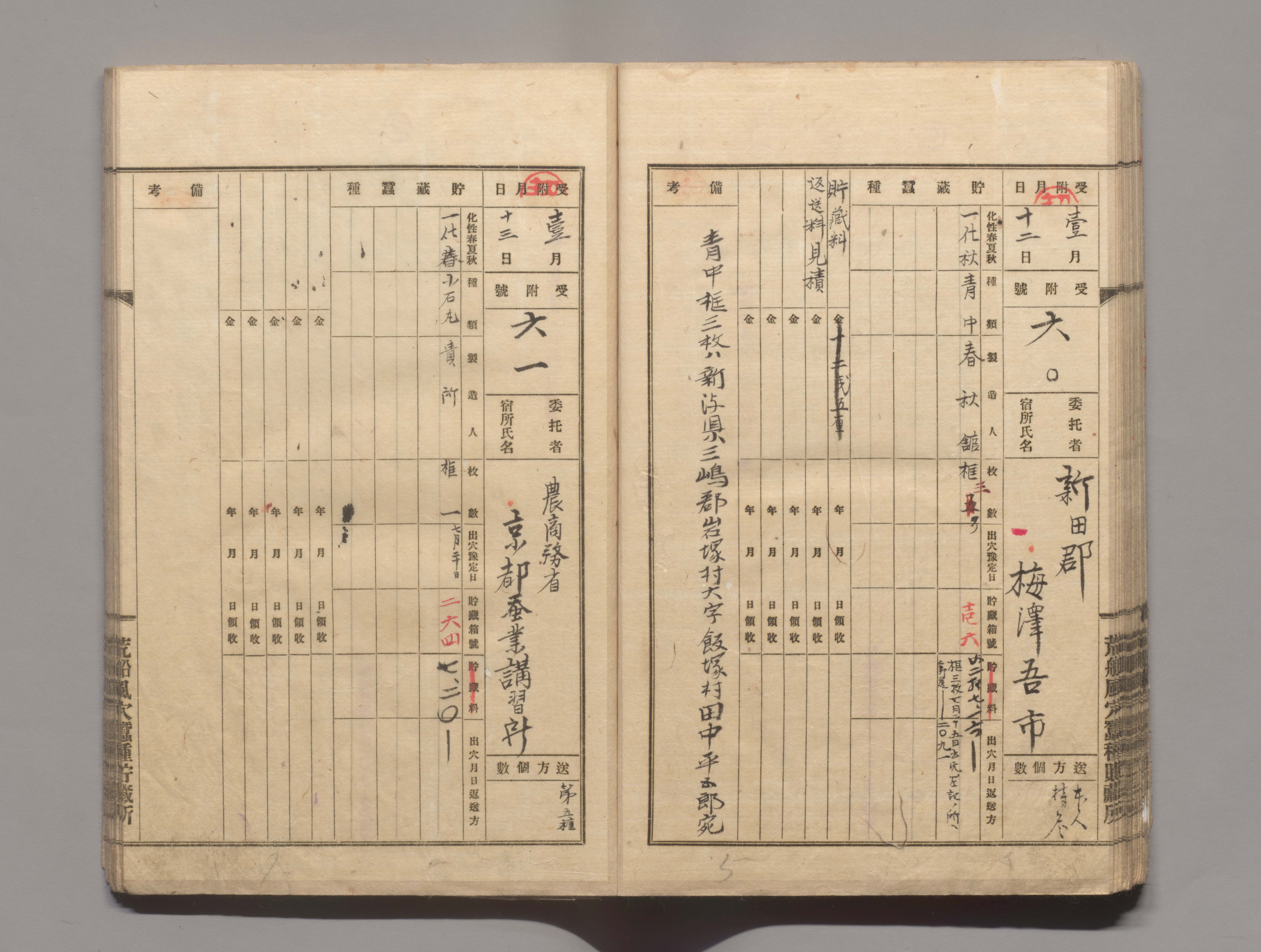 02993897_貯蔵蚕種受付台帳 第3期第1号(明治40年12月)