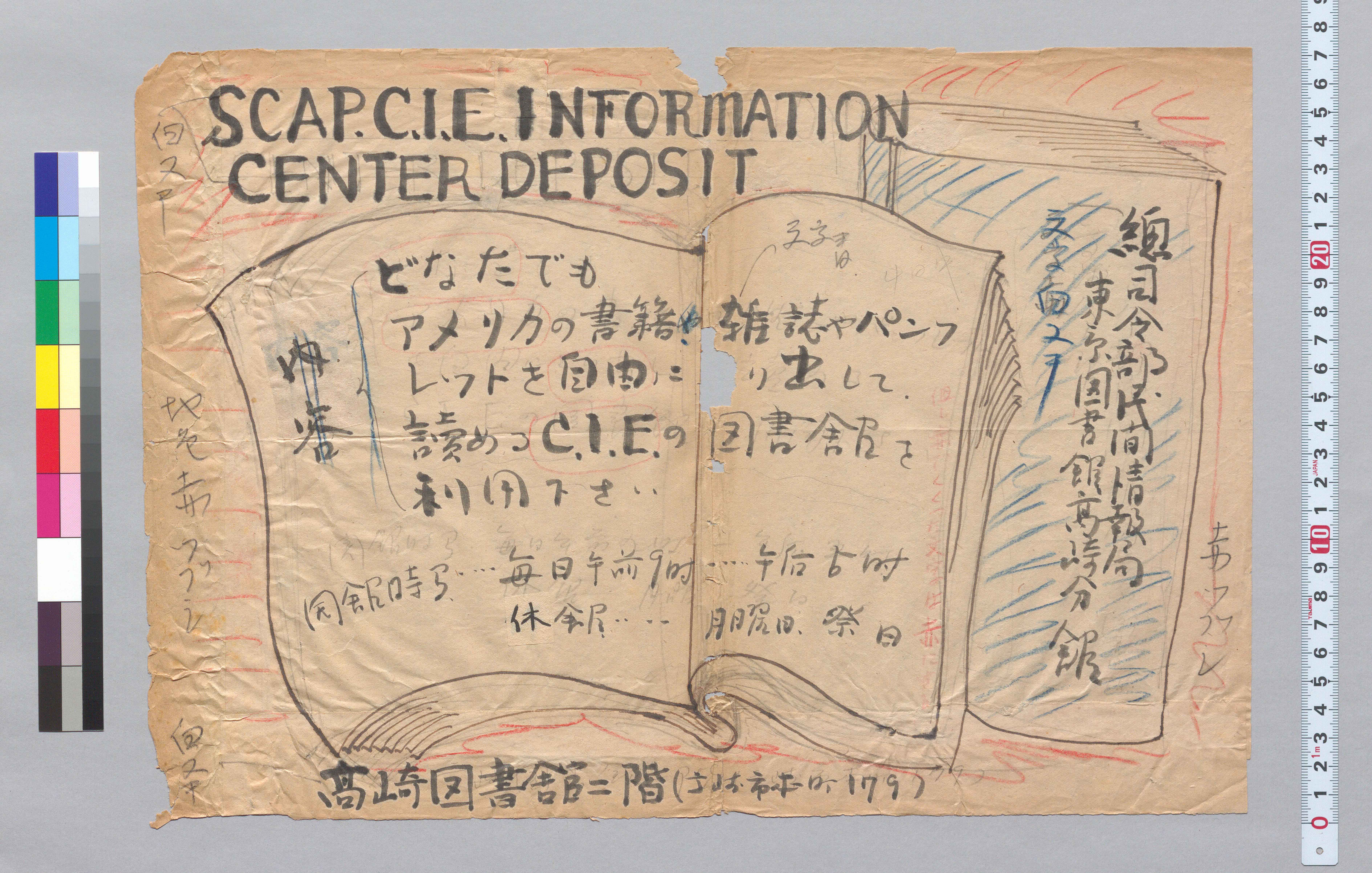 1110908249_[総司令部民間情報局東京図書館高崎分館ポスターおよび原稿]